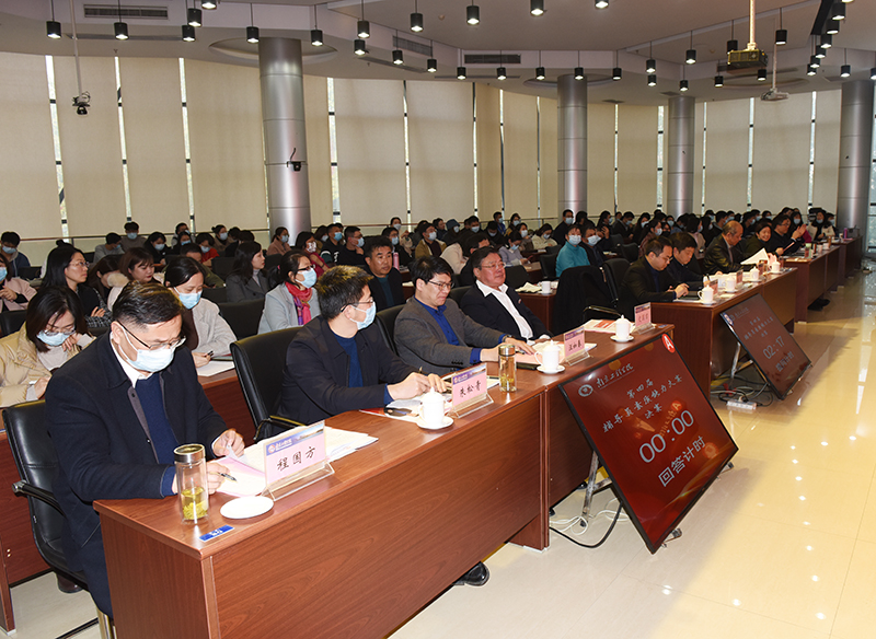 校党委书记史国君,党委常委、副院长张仰飞莅临决赛现场指导;南京医科大学学工处处长林炜、金陵科技学院学工处处长汪如春、江苏经贸职业技术学院学工处处长胡斌及我校相关职能部门负责人、学生工作专家应邀担任决赛环节评委。各学院(中心)分管学生工作负责人,学工处、团委工作人员,辅导员、学生代表近200人到场观摩比赛。