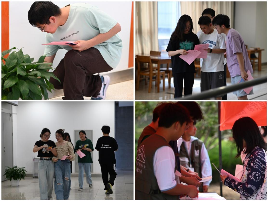 随着发令枪响,教职工代表队按照赛前抽签确定的顺序逐一出发,奔赴“寻书之旅”。规划线路、分工协作、明确目标、奋勇争先,各队展开了一番脑力加体力的比拼。文博苑旁、学海湾畔、云帆路上、天健苑前,都留下了老师们挥洒的汗水和矫健的身影,经过近一个小时的激烈角逐,所有队伍都完成了全部15处打卡点并寻得了包括《习近平著作选读》第一卷、第二卷在内的全部5册经典图书。