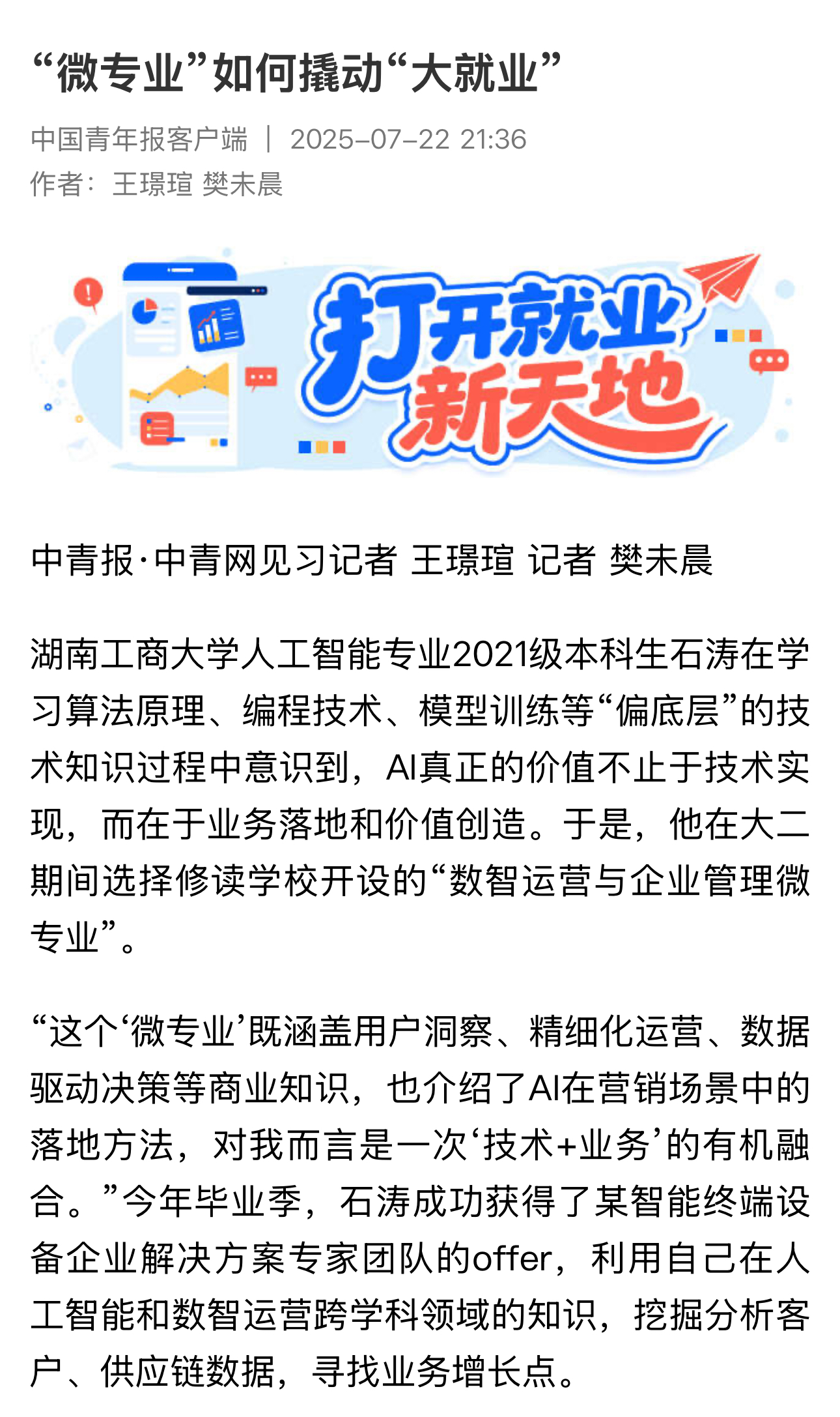 《中国青年报》:“微专业”如何撬动“大就业”