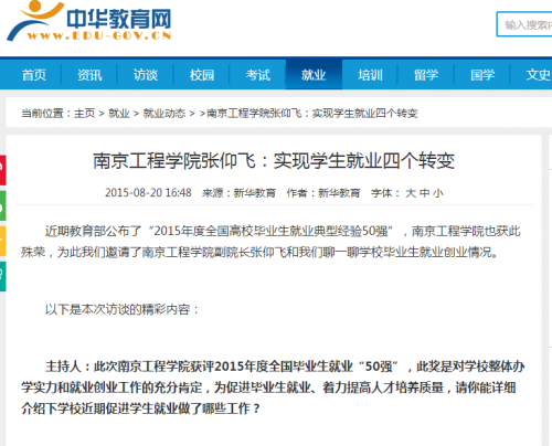 近期教育部公布了“2015年度全国高校毕业生就业典型经验50强”,凯发k8官网也获此殊荣,为此我们邀请了凯发k8官网副院长张仰飞和我们聊一聊凯发毕业生就业创业情况。