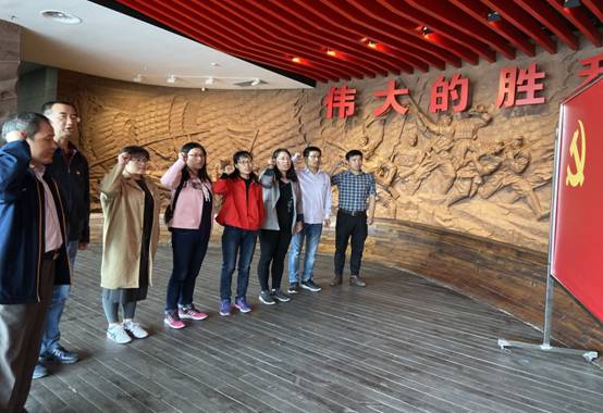 在雄伟的南京渡江胜利纪念馆序厅里,党支部书记带领全体党员面对鲜红的党旗,高举右手庄严宣誓。声声誓言,表达了支部成员为共产主义事业奋斗终身的坚定信念。渡江胜利纪念馆分为“命运决战”“雄师过江”“南京解放”和“今日南京”四个展区,分别再现了渡江战役前的国内形势、解放军准备渡江的历史情况、百万雄师过大江的宏伟壮举以及把红旗插遍全中国的胜利场景。全体党员怀着崇敬的心情学习了革命先辈的英勇事迹,观看了珍贵翔实的文物史料,感受了革命先辈们听党指挥、一往无前的崇高品质和不怕牺牲、勇于拼搏的英雄气概。