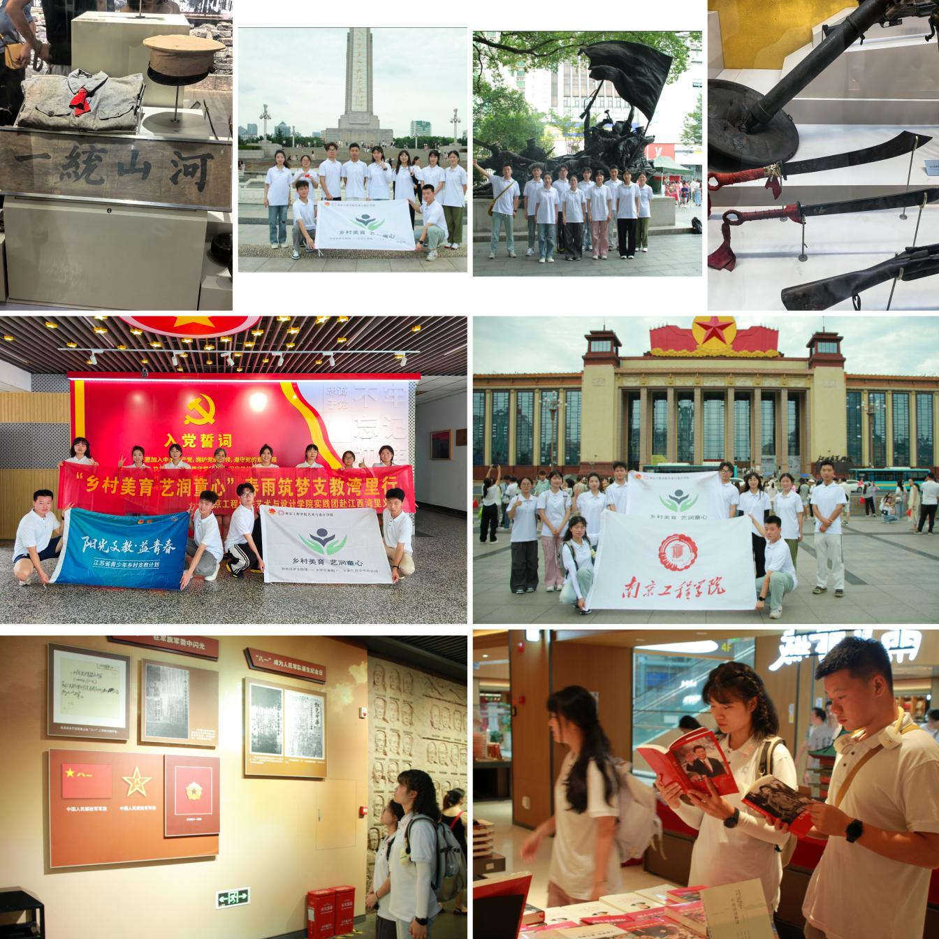 传承红色基因,弘扬革命精神。为感受江西深厚的红色底蕴,传承红色基因,实践团前往南昌市八一广场及纪念馆进行红色教育基地现场研学。他们被珍贵历史文物触动,贺龙将军的瓷器、周恩来同志的手表、起义部队的步枪……一件件文物见证了革命先辈们的英勇斗争,激励成员们珍惜当下、奋发图强。