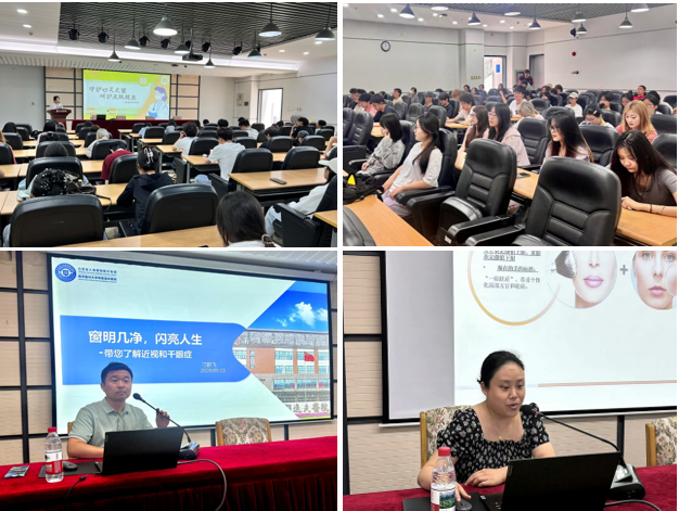 讲座中,刁鹏飞以“窗明几净,闪亮人生”眼健康知识为题,详细讲解近视与干眼症的成因及预防要点,特别提醒师生遵循“规范操作+定时更换”原则使用美瞳和隐形眼镜,眼部不适要及时就医。吴凡以“日常皮肤护理”为主题,从皮肤结构解析入手,系统介绍了“年轻态肌肤评估五大维度”,倡导“科学适度”护肤理念,重点强调“温和清洁、精准保湿、严格防晒”三大基础护理原则。